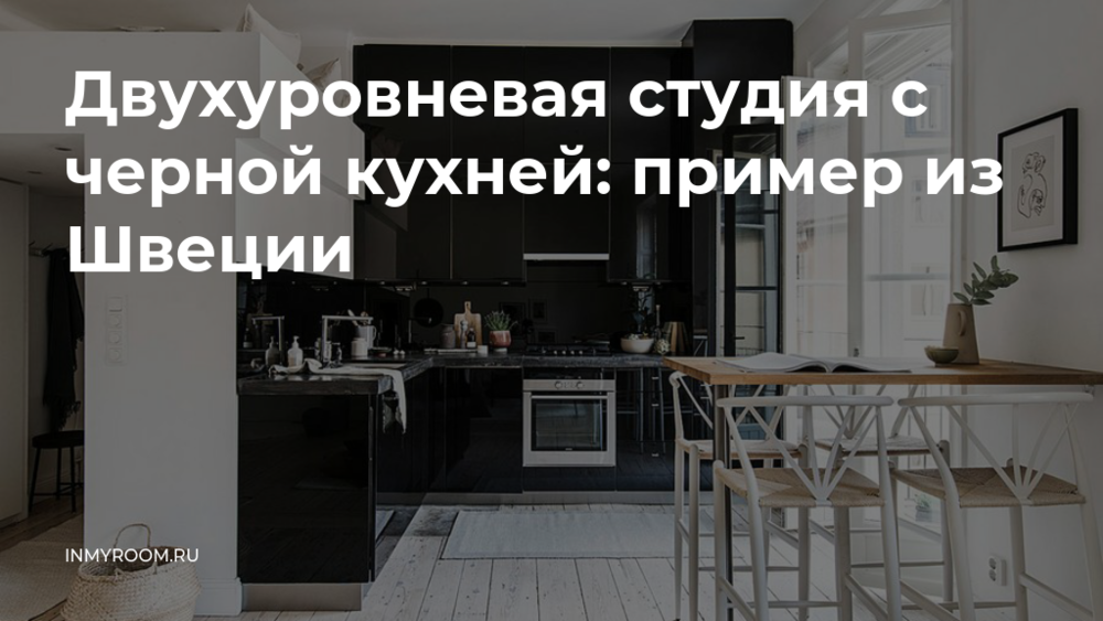 Отделка в студии минималистичная. Белые стены, натуральный деревянный пол, широкие окна, нарочно не прикрытые занавесками, текстиль из хлопка и даже оконные рамы из дерева. Но есть одно «но» — черная глянцевая кухня, которая не вписывается в концепцию знаменитой шведской практичности. Но это только на первый взгляд.
