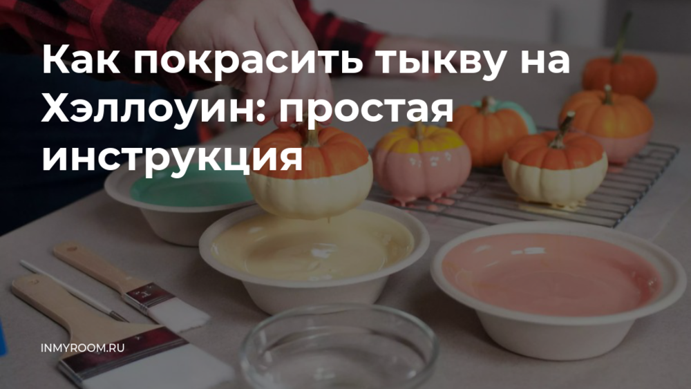 Их лучше налить в емкости с широким горлышком (например, в миски). Возьмите тыкву за хвостик и наполовину погрузите ее в краску. Затем дайте избыткам краски стечь обратно в миску.