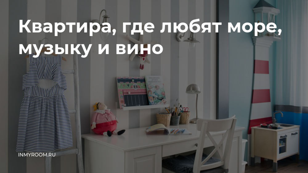 В основу оформления интерьера легла любовь домочадцев к морским путешествиям и вину. В цветовую палитру включили синий и оранжевый, а декор недвусмысленно отсылает к морской тематике. За диваном в гостиной гипсовые панели образуют волны, вытяжка на кухне напоминает маяк. В детских также обыгрываются морские элементы в декоре и отделке.