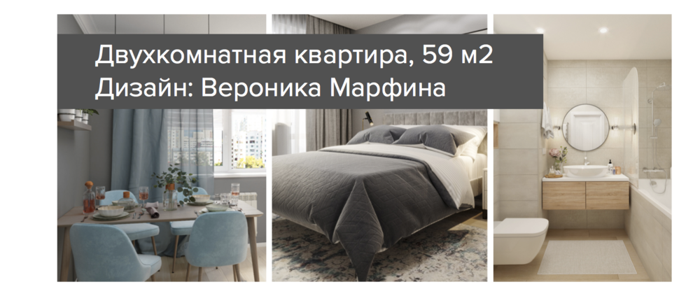 Общая цветовая палитра интерьера — серый, белый, натуральный цвет дерева и цветные акценты в виде декора и дивана в гостиной. Для оформления спальни использовали серо-синие цвета и холодный серый — для кухни и коридора. На таком фоне красиво смотрится белая мебель, и вместе с деревом получается очень гармоничное сочетание. Для гостиной и ванной выбрали светлые решения, это уравновесило серый цвет других зон, и квартира в целом получилась достаточно светлой.