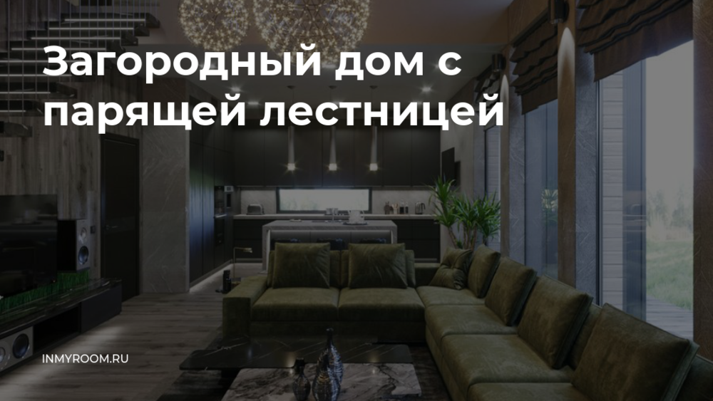 В просторной гостиной, объединенной с кухней, поставили большой диван г-образной формы, который визуально отделяет зону гостиной от кухни. Благодаря способу крепления ступенек и скрытой подсветке лестница на второй этаж выглядит парящей в воздухе. Для отделки первой спальни дизайнер выбрал черно-белую цветовую гамму с серыми оттенками. Интересным декоративным элементом стала фактурная стена со встроенной подсветкой у изголовья кровати. Вторую спальню визуально расширили с помощью боковых зеркал. На первом этаже оборудовали просторную сауну с отдельной душевой.