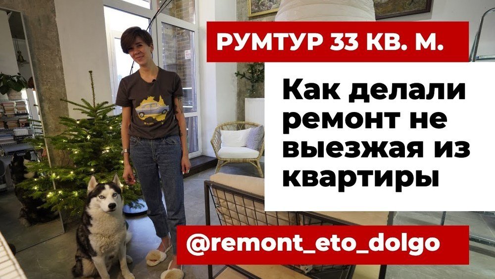 Аня Киселева делает ремонт самостоятельно и ведет об этом блог в Инстаграме. Небольшую студию 33 м² удалось превратить в немного хипстерское, но очень комфортное пространство для жизни втроем: с бойфрендом Женей и хаски Пломбиром. Здесь собраны смелые (но бюджетные!) решения: неокрашенная стена, кровать-чердак, самодельная столешница из мозаичной плитки. Всех секретов раскрывать не будем — смотрите видео!