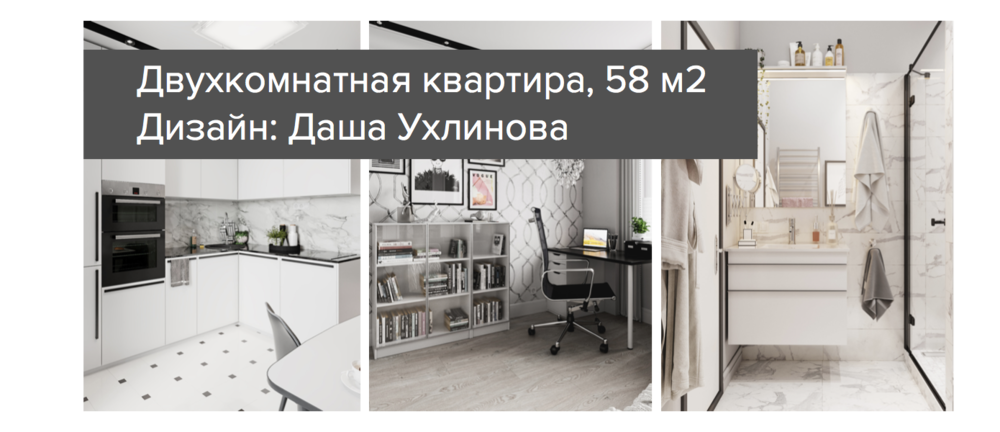 В проекте использовано много зеркал: небольшая квартира визуально расширилась и заполнилась светом. Этому способствуют также белые оттенки стен и контрастная мебель. В холле огромное зеркальное панно с секретом — одна из его частей закрывает электрический щиток. Зеркало в гостиной обозначает туалетную зону: здесь поставили столик со всеми необходимыми средствами для красоты и пуфик.