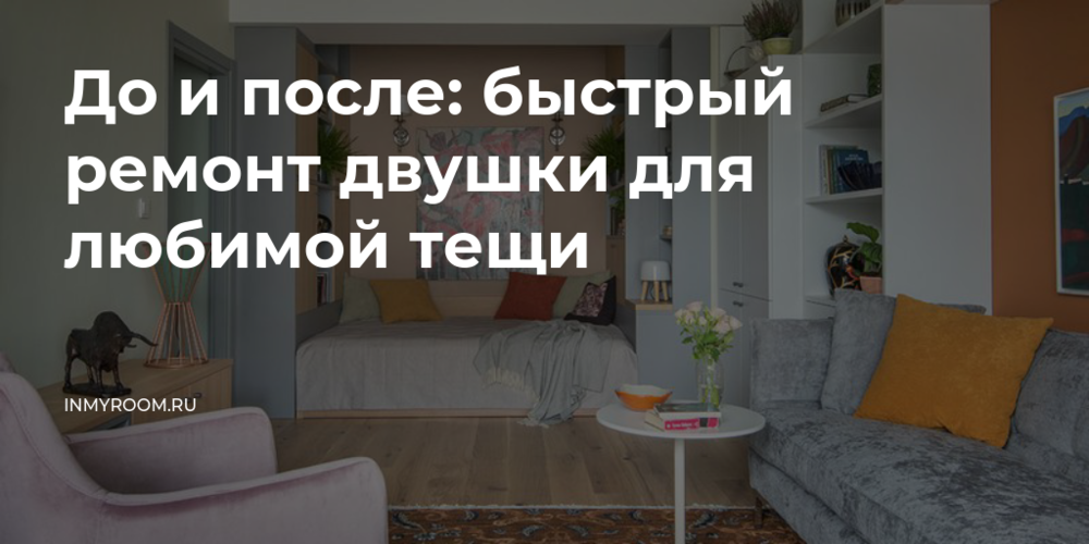 Заказчик попросил дизайнера Наталию Суслину оформить квартиру для своей тещи. Важно было сохранить существующую планировку, при этом превратив «убитую» двушку в комфортное и функциональное жилье для одного человека, плюс предусмотреть спальные места для гостей и внуков.
