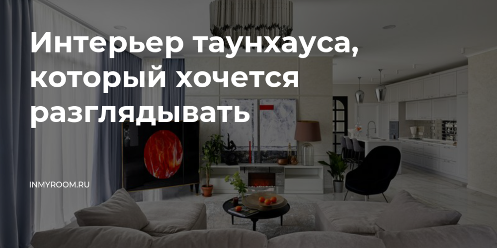 Зал совмещен с кухней и обеденной зоной. В доме много панорамных окон, поэтому интерьер очень светлый, эффект усилили зеркалами и глянцевыми поверхностями столярных изделий. По центру расположен электрокамин в зеркальной раме. Витрина «Пламя» в стиле ар-деко, выполненная по эскизным чертежам дизайнеров Home Emotions, была ранее выставлена в музее декоративно-прикладного искусства. Ярким акцентом гостиной стала работа художника Софьи Пятницкой.