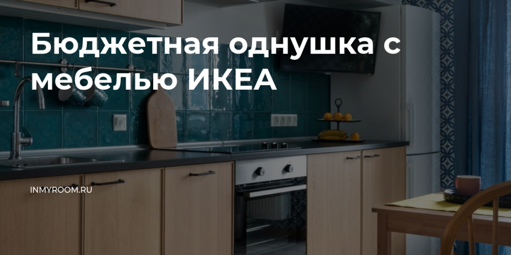 Кухонную мебель и всю технику, кроме стиральной машины, купили в ИКЕА. Сделали высокие верхние шкафы и открытые полки для декоративных мелочей. Мебель, текстиль и часть декора тоже из ИКЕА — это помогло вписаться в небольшой бюджет. Шторы в жилой комнате купили в Leroy Merlin, где их надставили по длине в ателье.