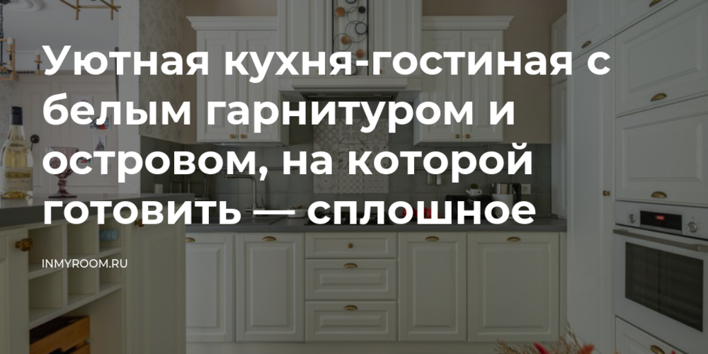 Цветовая гамма кухни-гостиной очень спокойная: это пожелание заказчиков — они хотели дома отдыхать от ярких красок. Поэтому для гарнитура выбрали белый цвет, разбавив его фартуком красивого серо-оливкового цвета и золотой фурнитурой. Кухню изготавливали по эскизам дизайнера, диван и стулья также сделали на заказ у местных производителей, чтобы использовать одинаковые материалы. Большой стол и барные стулья нашли в ИКЕА.