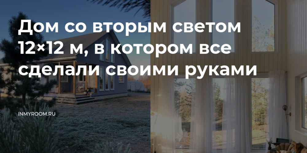 Наш дом 12×12, высота в коньке около шести метров, построен по индивидуальному проекту. Заходя в помещение, вы сразу попадаете в гостиную-кухню со вторым светом. Это центр нашего дома и моя безусловная любовь и воплощенная мечта: второй свет — это просто потрясающе. При такой планировке дом наш объемный и наполненный светом и воздухом, в гостиную свет вообще попадает со всех четырех сторон.