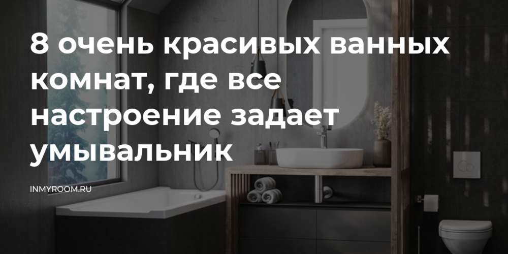 Актуальный накладной умывальник также станет украшением минималистичной ванной комнаты: если вы хотите оформить интерьер в темной цветовой гамме, белая сантехника разбавит сдержанный дизайн и превратится в лаконичный акцент.