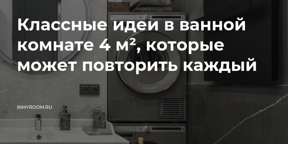 Пять интересных идей для обустройства совмещенного санузла мы подсмотрели в гостях у Полины Добрянской. Площадь комнаты — около 4 м², а если считать нишу под стиральную и сушильную машины, то около 4,5 м².