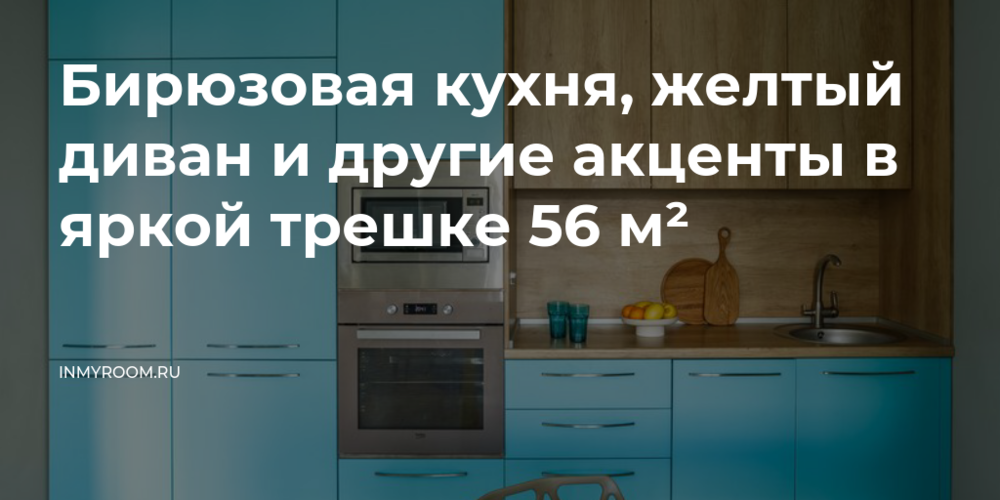 Заказчица живет в этой квартире с двумя сыновьями, поэтому спальню и детскую разместили в противоположных концах, а центром стала кухня-гостиная, где собираются все члены семьи. Хозяйка — жизнерадостный человек, сразу обозначила, что ее интерьер должен быть оформлен в ярких красках. Дизайнер Юлия Танцирева выбрала в качестве акцентных бирюзовый и желтый цвета.