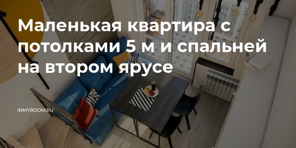 Заказчица — молодая девушка с кошкой, ведет активный образ жизни и периодически приглашает гостей. Площадь квартиры небольшая — всего 25 квадратных метров, но при этом очень высокие потолки (около 5 метров), поэтому получилось сделать второй этаж и организовать там спальню. В общем пространстве высота осталась: вместе с окнами в пол это создает необычный эффект. Хозяйка работает дома, поэтому дизайнеру Анастасии Клочко нужно было предусмотреть домашний офис у окна. С этим не возникло проблем, так как раскладной стол совместил функции обеденного и рабочего.