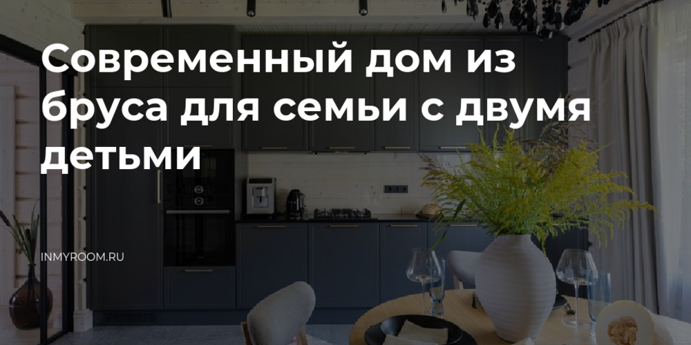 Владельцы этого двухэтажного дома с цокольным этажом — семья с дочерью-подростком и сыном дошкольного возраста. Они обратились к дизайнеру Юлии Любляновой, чтобы создать уютное, функциональное, гармоничное и долговечное пространство для жизни. Чтобы сделать интерьер воздушнее и светлее, стены из бруса выкрасили полупрозрачной краской. Акцентным стал темно-серый цвет, который используется в отделке мебели и в отделочных материалах.