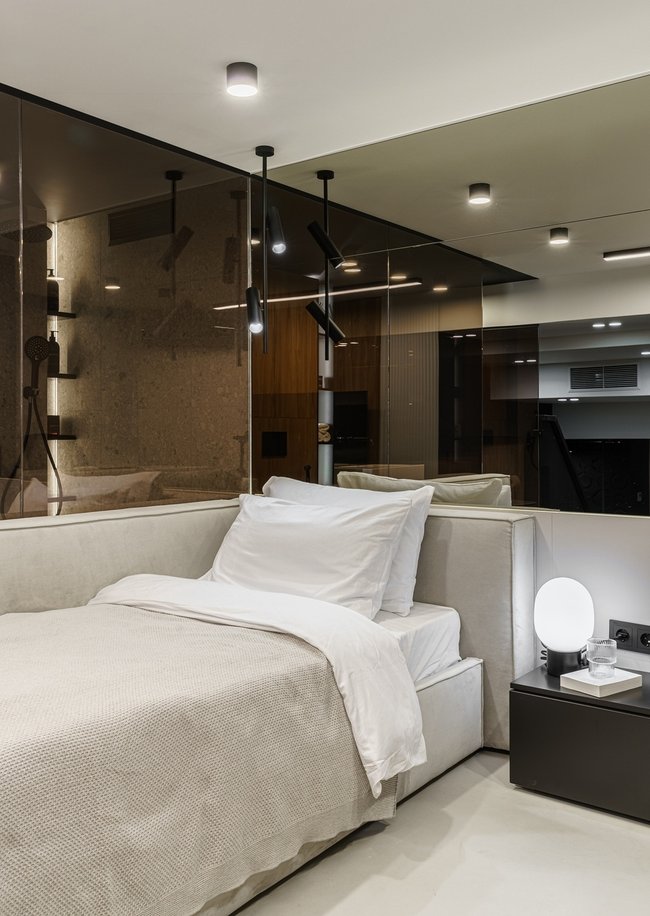5. Санузел, отделенный от спальни тонированным стеклом.
