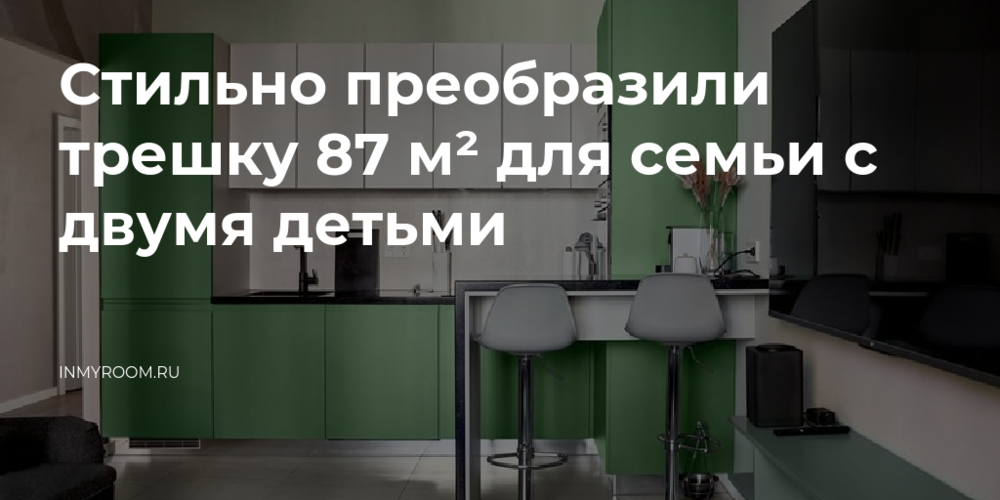 В квартире будет проживать семья из четырех человек: мама, папа и двое маленьких детей (сын и дочь). Перепланировку делать не стали. Здесь есть кухня-гостиная, три комнаты, два санузла и кладовка. Так как площадь позволяла, родителям обустроили отдельную спальню и каждому ребенку — свою комнату.