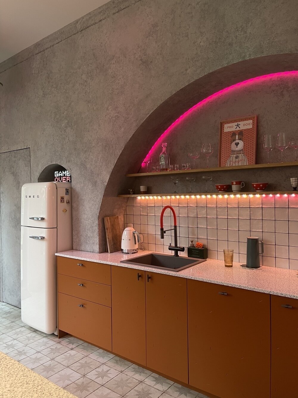 Всего за два года Саша и Вероника построили свой уникальный дом с нуля, уделив внимание деталям в каждой комнате, что делает его настоящим произведением искусства. Особое внимание заслуживает кухня, яркая и стильная, с неоновым санузлом и умным освещением, а также вдохновленные винтажем элементы. Этот дом можно было бы увидеть в Pinterest!