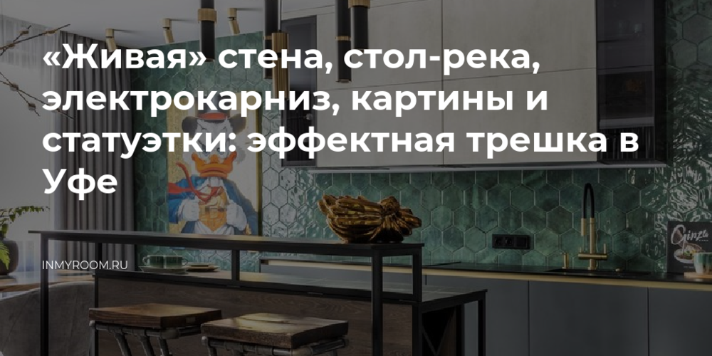 Еще одна эффектная деталь — картина Скруджа Макдака. Этот образ очень символичен для заказчика, поэтому в квартире появились картины и статуэтки героя. На фоне зеленой стены на блестящем золотом холсте — портрет Скруджика. «Заказчик увидел подобную картину в интернете, но ее стоимость была около полумиллиона рублей. Мы заказали копию у нашего местного художника, получилась шикарная реплика!» — делится дизайнер Ольга Маганова.