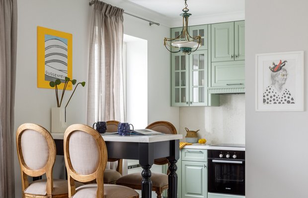Дизайнер Юлия Миронова оформила красивую трехкомнатную квартиру площадью 67 кв. м. Из ремонта девяностых создали стильный современный интерьер с винтажными акцентами и сохранили дух старой московской квартиры. Вместо крошечных неудобных комнат сделали законную перепланировку и объединили кухню с гостиной, при этом отказавшись от газа. Изолированными остались две спальни.