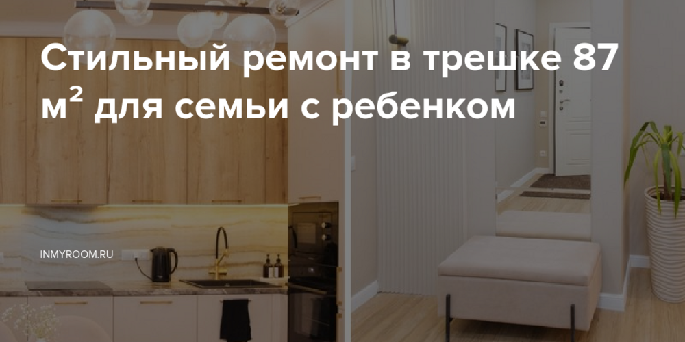 Квартира довольно просторная — 87 кв. м. Благодаря переносу нескольких перегородок удалось сделать удобную кухню-гостиную, изолированную спальню для родителей и полноценную детскую для дочки. Также в квартире два санузла — это делает быт комфортнее.