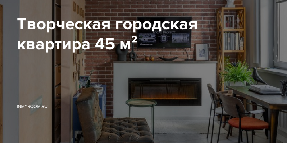 Галина Бардашевич оформила небольшую двушку площадью 45 кв. м для творческих заказчиков. Они постоянно живут за городом, но для удобства решили купить городскую квартиру и обустроить в ней творческую мастерскую. Кроме рабочей зоны необходимо было предусмотреть обеденную зону и приватную зону для отдыха. В результате перепланировки пространство от кухни до гостиной объединили в студию, а спальню отделили перегородкой.