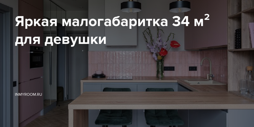 Проект небольшой евродвушки 34 кв. м создавался для молодой девушки-врача. Заказчица любит розовый цвет и хотела применить его в интерьере. У дизайнера Алены Матисовой были большие опасения, что квартира с такими оттенками будет выглядеть немного инфантильной, поэтому основная задача была сделать нежный, женственный интерьер, но функциональный и благородный.