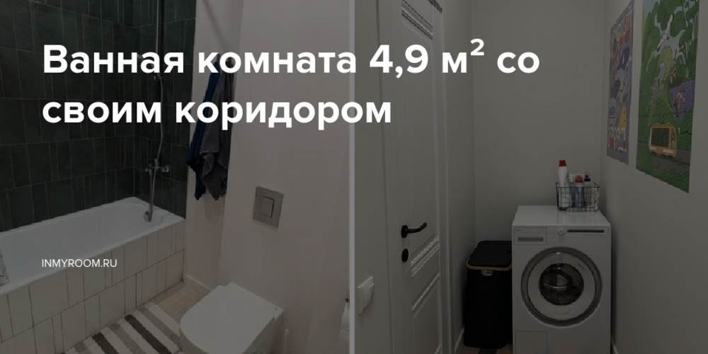 Напротив этой ниши раньше был вход на кухню. Его «зашили» и обустроили постирочную — поставили стиральную машинку, корзинку для белья и моющие средства.