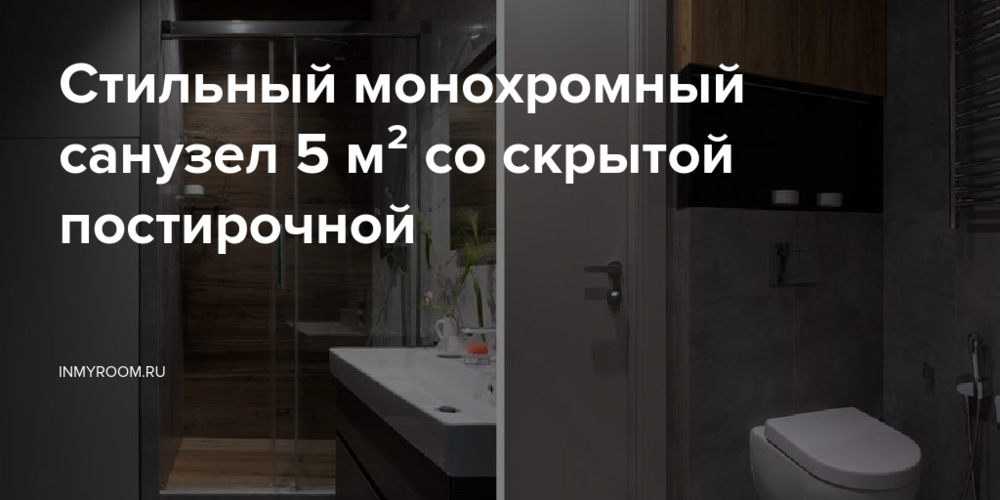 Этот современный санузел оформила дизайнер Алина Васьковская в двушке 49 кв. м. За основу взяли серые приглушенные оттенки серого. Их монохромная палитра контрастирует со стеклом, хромом и плиткой с фактурой дерева.