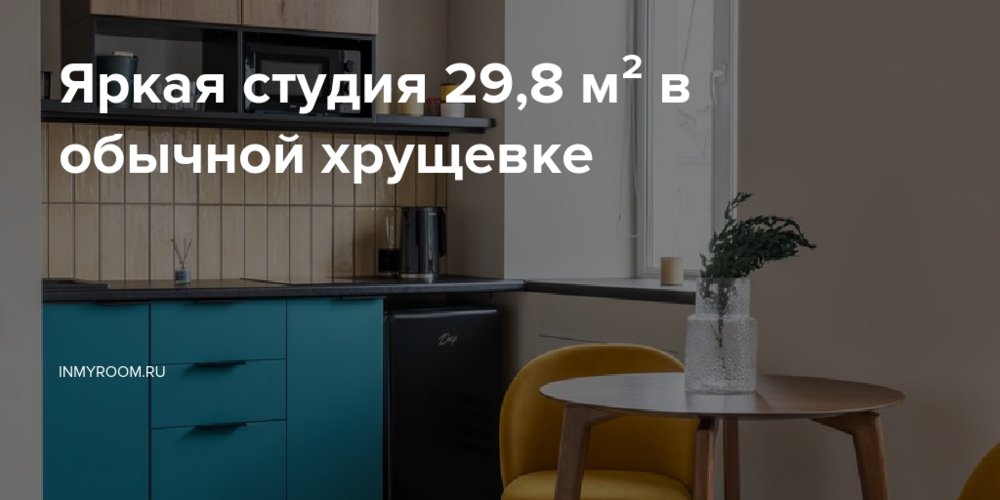 Перед дизайнером Анастасией Ляпиной стояла задача создать светлое пространство на 30 квадратах в старой хрущевке для сдачи в аренду. Гости, которые приезжают и снимают жилье на несколько дней, не всегда готовы использовать яркие решения у себя дома, поэтому могут «примерить» их на себя в этом интерьере. Автор проекта решила сыграть на контрастных цветах, за основу взяла желтый и небесный изумруд.