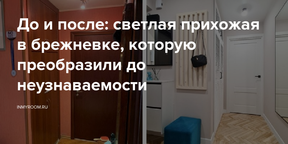 В процессе переделки изменили и цветовую гамму, и наполнение прихожей. В обновленном пространстве стены окрашены светло-бежевой краской, на полу — отреставрированный советский паркет. По левую руку от входа повесили компактную обувницу. Она может выполнять роль полки, на которую удобно положить ключи.