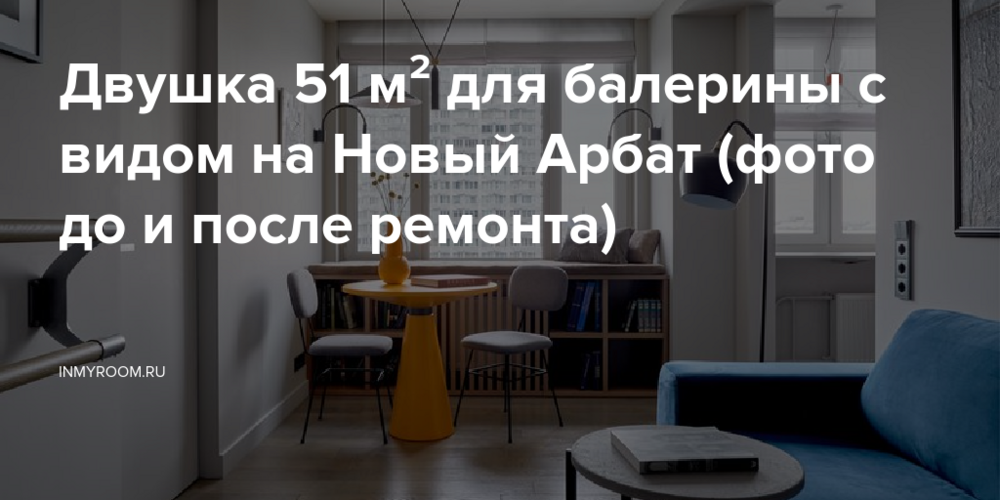 Хозяйка квартиры — молодая девушка, балерина-любитель, живет за границей и периодически бывает в Москве. Квартира была нужна для краткосрочных визитов в столицу, поэтому выбор пал на небольшую двушку в панельном доме на Новом Арбате. Из «бабушкиного» ремонта дизайнеры Мария Петрова и Елена Андронова сделали стильный воздушный интерьер с современной мебелью и декором.