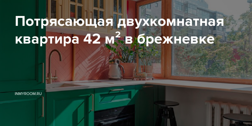 Небольшая квартира площадью 42 кв. м находится в старом панельном доме, брежневке. Типовую планировку менять не стали, но убрали газовую плиту в целях безопасности. Обустроили кухню с барной стойкой около окна, гостиную с большим количеством посадочных мест для гостей и приватную спальню.