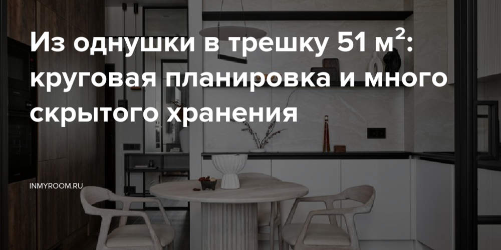 Эта квартира находится в московском жилом комплексе бизнес-класса ЖК «Эвер». Дизайнер Марина Сутырина создала в ней красивый уютный интерьер в стиле джапанди. На площади 51,6 кв. м ей удалось обустроить полноценные три комнаты. Основная фишка квартиры — круговая планировка. Она дала возможность сделать четыре отдельные функциональные зоны с двумя окнами, и при этом в каждую комнату попадает солнечный свет.