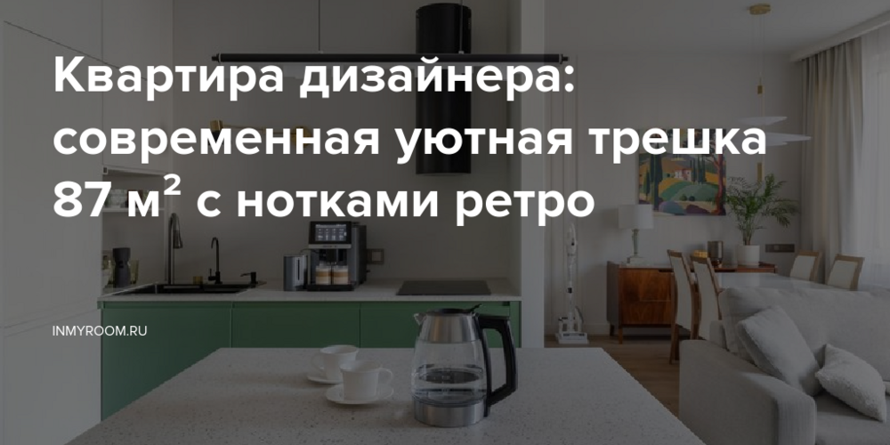 Зону столовой дополнили винтажным комодом-бельевицей, который хозяева привезли из старой квартиры. Ему подобрали оригинального «ретропартнера» — латунный торшер времен ГДР. Забирали торшер из старого дома в поселке Переделкино, где в середине 20 века были дачи советских писателей. Главным объединяющим элементом интерьера стала картина над комодом, собравшая в себе все цвета интерьера.