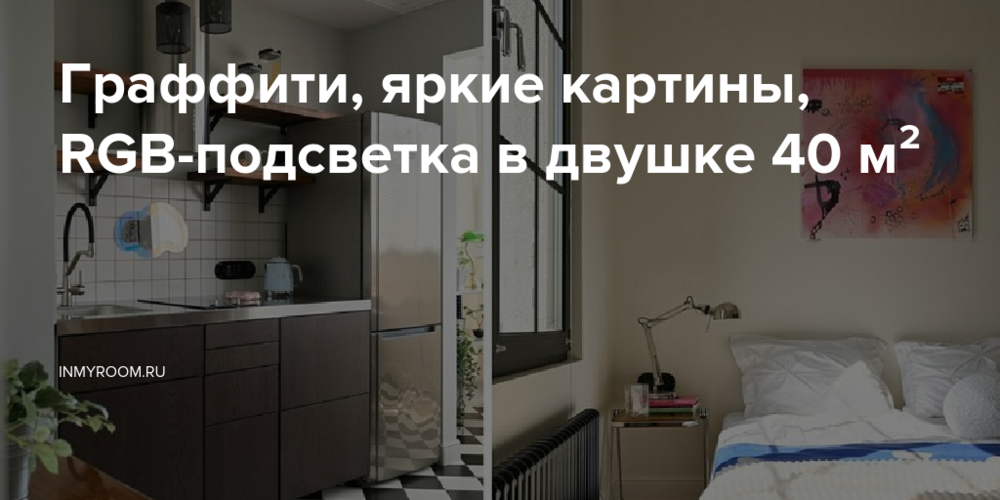 Дизайнер Серафима Гавриленко придумала стильный необычный интерьер для молодой семейной пары с домашними питомцами. Площадь квартиры составляет всего 40 кв. м, но благодаря небольшой перепланировке удалось обустроить спальню и кабинет-музыкальную студию. В оформлении ставку сделали на базовую отделку и акцентные детали — граффити в санузле, винтажные предметы интерьера, яркие картины, выкрашенные шпросы (разделительные планки) на окнах в спальне.