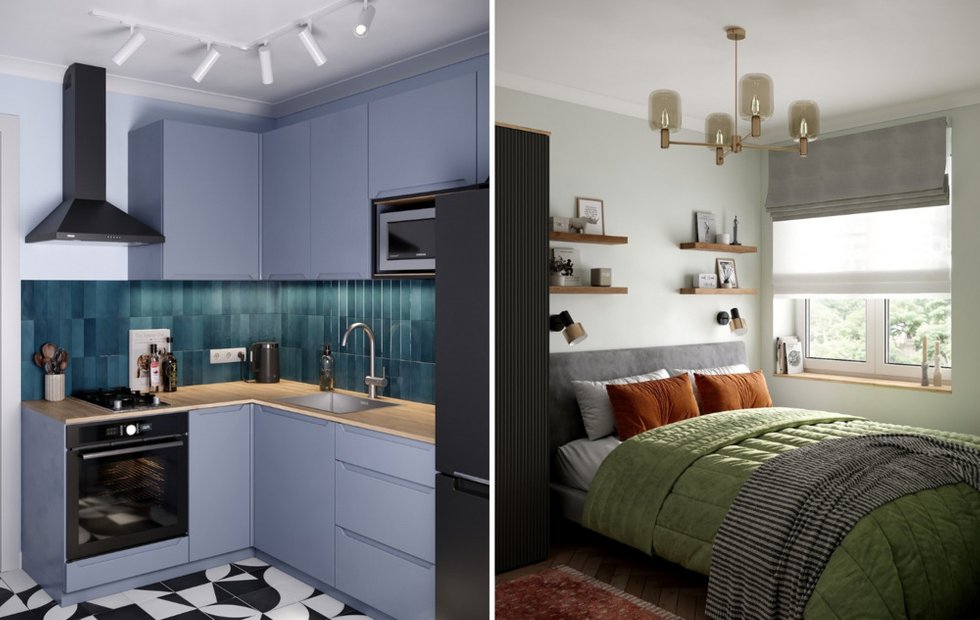Заказчики — семейная пара с собакой — попросили дизайнера Ирину Собыленскую обновить интерьер маленькой двухкомнатной квартиры 38 кв. м. Это типовая хрущевка, возможно, попадет через несколько лет под программу реновации, поэтому важно было создать удобное пространство без глобальной перепланировки и без большого бюджета. Ставку сделали на замену старых коммуникаций, цветную отделку и мебель и готовые предметы из наличия.