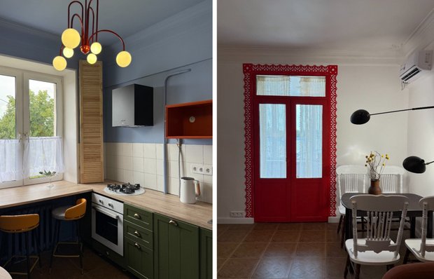 Дизайнеры Ия Оболкина и Никита Чернышов обустроили двухкомнатную квартиру, которая находится в московском районе Измайлово в доме 1953 года постройки. Заказчица унаследовала квартиру от своего отца, и у нее осталось множество памятных вещей. Одной из задач дизайнеров стало интегрировать эти предметы в интерьер. За основу взяли русский стиль, и каждая зона получилась в духе определенной эпохи.