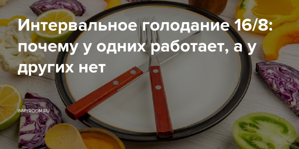 Интервальное голодание 16/8 — это режим питания, где вы едите в течение 8 часов (например, с 12:00 до 20:00), а остальные 16 часов голодаете (только вода, чай, кофе без сахара и молока).