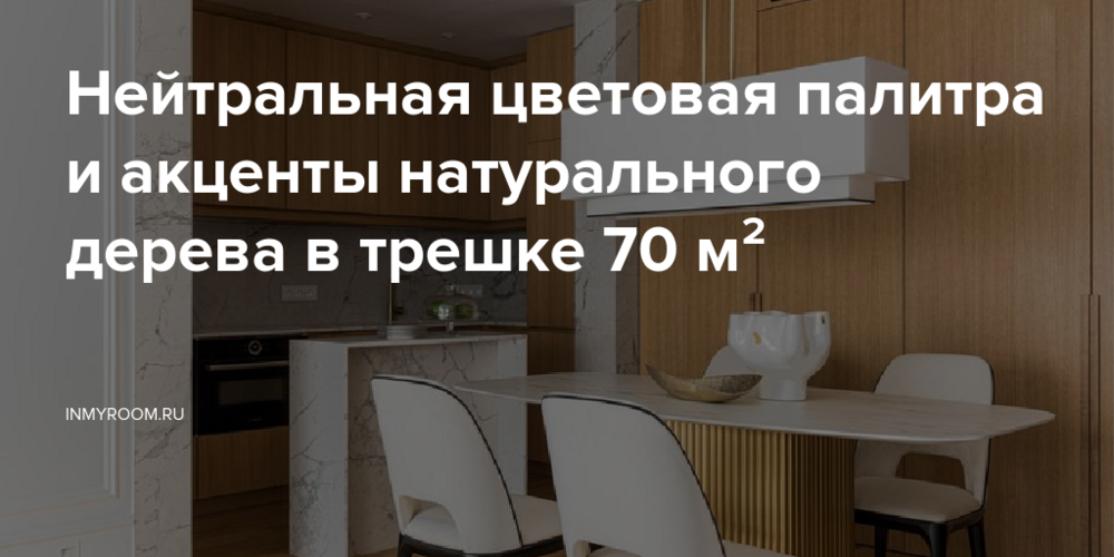 Для минимизации визуального шума дизайнер спроектировала кухню вглубь помещения. Кухонный гарнитур повторяет оттенок декоративных деревянных панелей и отделен от обеденной зоны небольшим островом из керамогранита. Подвесной светильник над столом гармонично сбалансировал композицию и добавил уюта. Завершающим штрихом стала картина художницы Марины Киселевой из галереи Art&Brut.