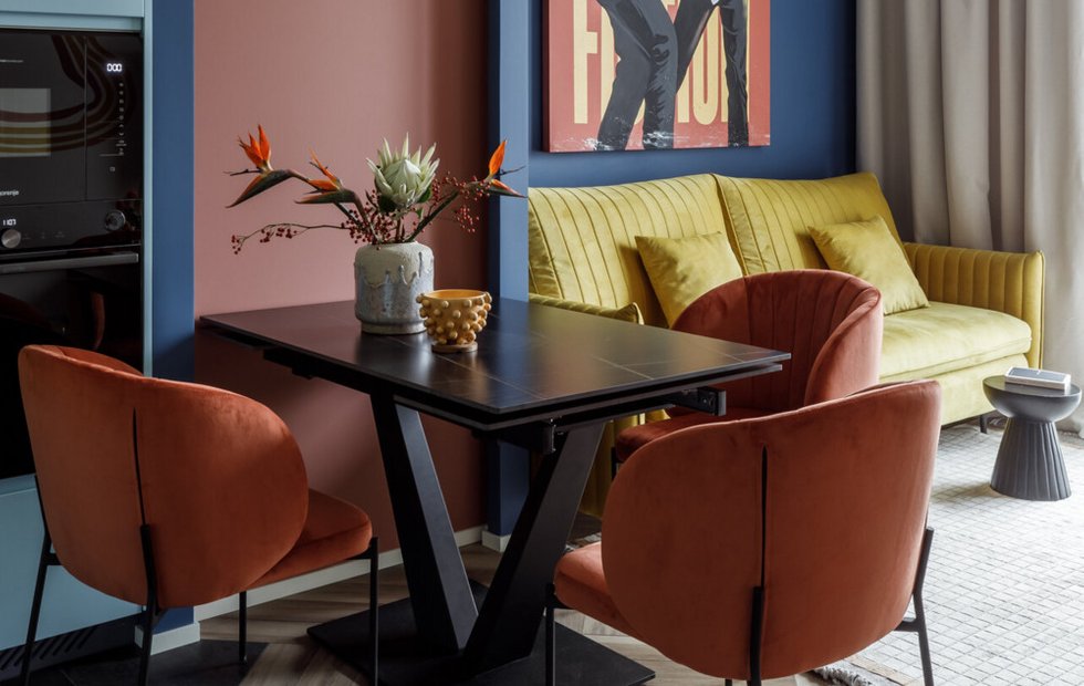 - Уют — это когда чисто, но не музейно. Диванные подушки слегка помяты, на столе стоит ваза с цветами и пара книг, на кухне видна кофеварка и корзинка с фруктами. Следы жизни, но не беспорядок.