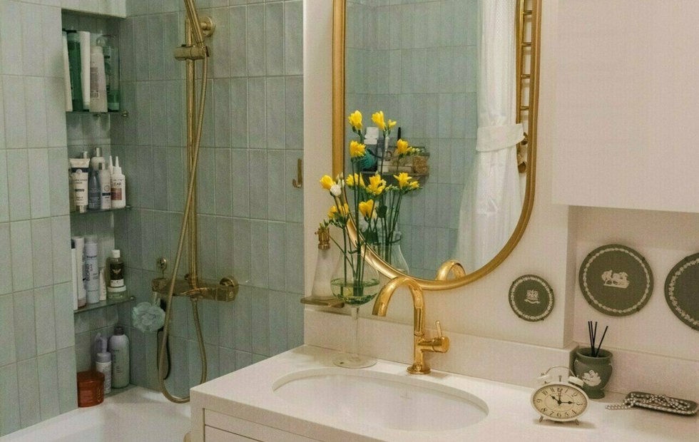 - Большое зеркало. Над раковиной или на всю стену визуально удваивает пространство. Зеркало от пола до потолка работает лучше маленького.