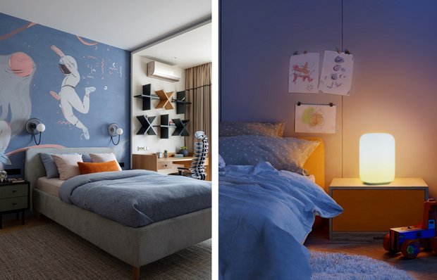 Совет INMYROOM: для создания настроения можно предусмотреть умную светодиодную ленту. Представьте, как благодаря ей, обычная детская комната преображается в волшебный мир! Этот яркий акцент, с палитрой в шестнадцать миллионов цветов, позволит ребенку создавать любое настроение: от уютного полумрака звездной ночи до бодрящего сияния рассвета. Легкость установки и возможность подключения к датчику движения превратят комнату в умное пространство, где свет всегда встречает своего маленького хозяина, даря ощущение комфорта, безопасности и безграничного простора для фантазий.