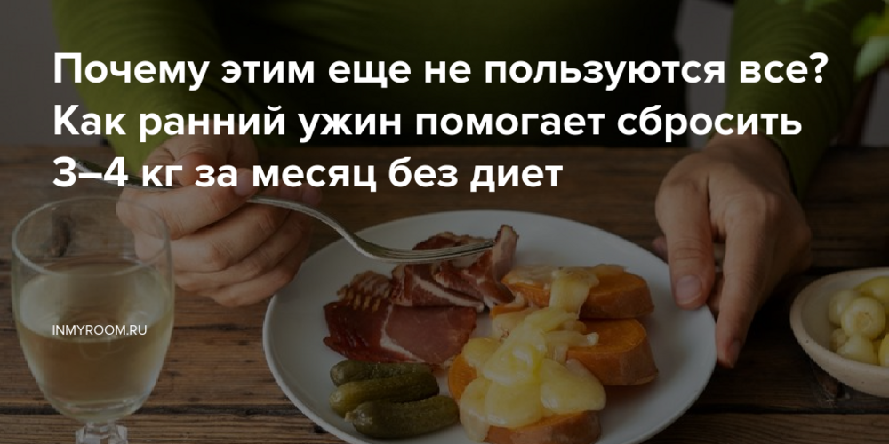 Ранний ужин в 16:00–17:00 дает 14–15 часов ночного голодания — запускается жиросжигание.