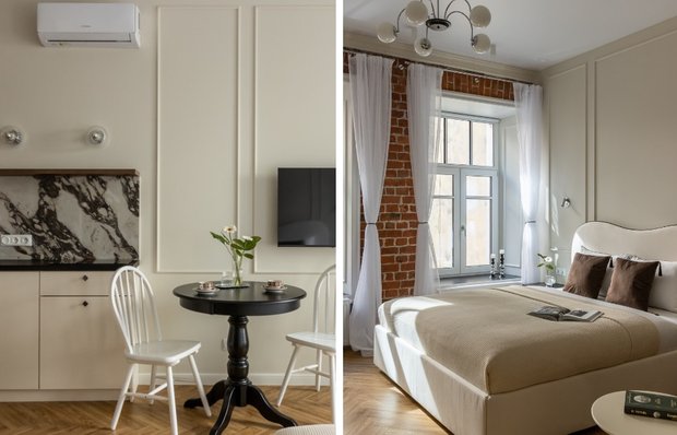 Студию площадью 30 м² в Санкт-Петербурге дизайнер Екатерина Шейн оформляла для сдачи в аренду с учетом жестких инженерных ограничений и необходимости разместить все базовые функции. Важным было сохранить исторический характер пространства, не перегрузив его мебелью и декором. В итоге интерьер получился компактным и логичным, а многие решения легко адаптировать и для других небольших квартир.