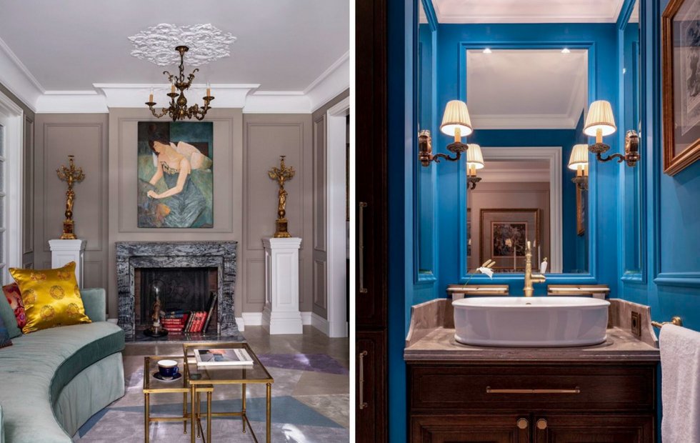 Дизайнер Дмитрий Якубов приобрел эту квартиру для себя и занимался ее оформлением совместно с коллегой Давидом Сергеевым. Вместе они основали студию Ricco Interno, которая уже более двадцати лет специализируется на дизайне частных интерьеров. Первоначально планировался классический интерьер в спокойной серой гамме, однако в процессе работы задача трансформировалась: появилось желание осовременить и оживить монохром, добавить цвета и актуальные акценты. Важно было также интегрировать в интерьер личную коллекцию антиквариата и винтажа.