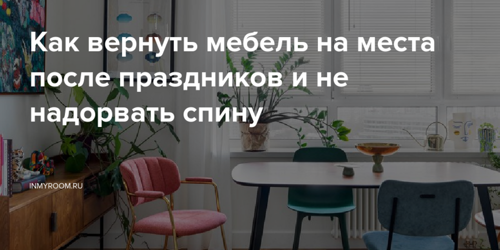 Перед Новым годом стол раздвинули до максимума, диван отодвинули к стене, кресло перетащили в спальню, а журнальный столик и вовсе отправили на балкон. Теперь праздники позади, а мебель так и стоит не на своих местах. Таскать тяжести после салатов и шампанского — удовольствие сомнительное, да и спина уже не та. Разбираемся, как вернуть все обратно без травм, надрыва и скандалов с домочадцами.