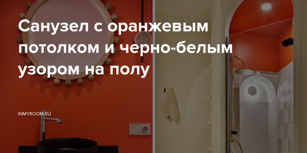 В основном санузле дизайнеры продолжили тему «радостного оранжевого», окрасив верхнюю часть стен душевой и потолок в этот яркий и энергичный оттенок. Цвет создает эффект светящегося купола над головой и визуально приподнимает пространство, делая его более объемным. Нижнюю часть стен выкрасили в нежный кремовый оттенок, который смягчает активность оранжевого.