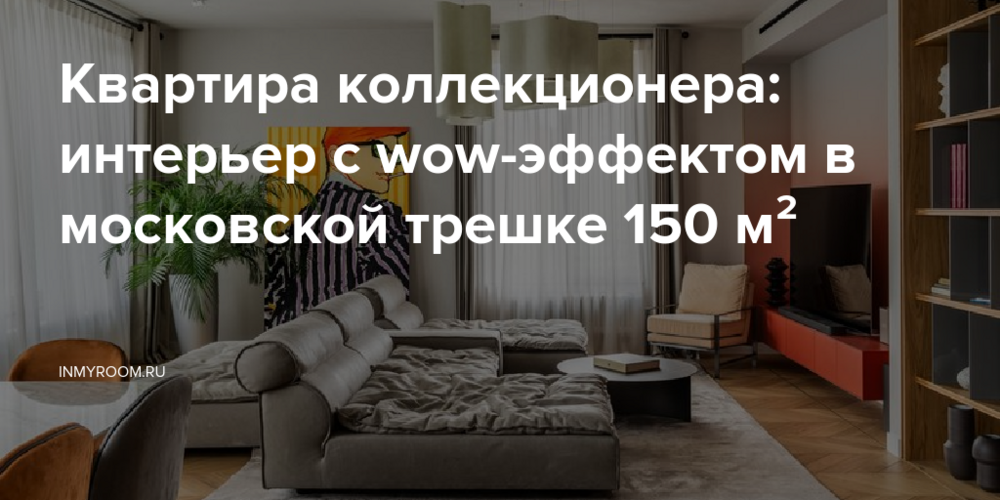 В прихожей организована галерейная развеска картин, позволяющая менять экспозицию и экспериментировать с расположением экспонатов на разной высоте. Сквозные стеллажи в коридоре и гостиной демонстрируют коллекционные предметы, которые становятся яркими акцентами интерьера. Во всю стену напротив входа разместилась библиотека с внутренней подсветкой полок, создающей особенно эффектную атмосферу в вечернее время.