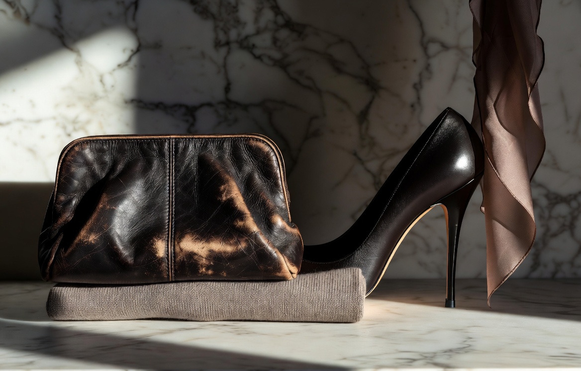 - Фактуры тоже должны сочетаться. Грубая кожа и нежный шелк в одном образе создают диссонанс. Матовые и блестящие поверхности работают вместе только при умелом балансе.