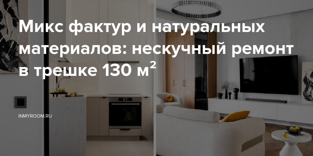В интерьере преобладают натуральные материалы — дерево и камень. Мебель выполнена из специально подобранного шпона дуба, обработанного таким образом, чтобы изящно подчеркнуть красоту древесного узора. Для отделки стен выбраны каменные текстуры: на ТВ-стене использованы панели, имитирующие скалу, а в других зонах — рифленый камень. Также в качестве декора применена штукатурка с текстурой бетона в теплых песочных тонах.