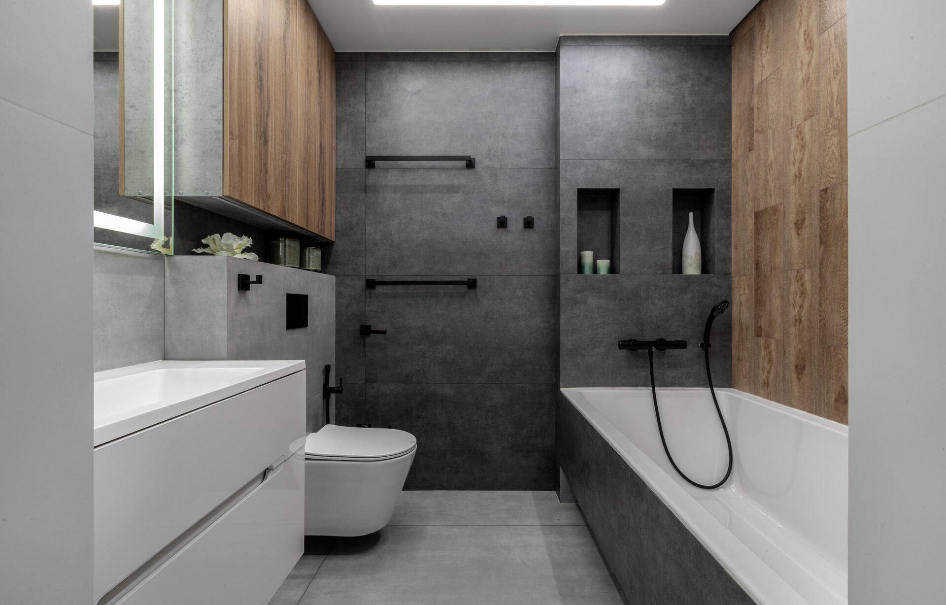 - Экономия места. В маленькой ванной каждый сантиметр на счету. Труба в стене не занимает полезное пространство.